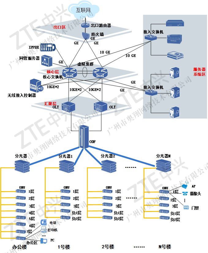 企業園區組網示意圖如下: